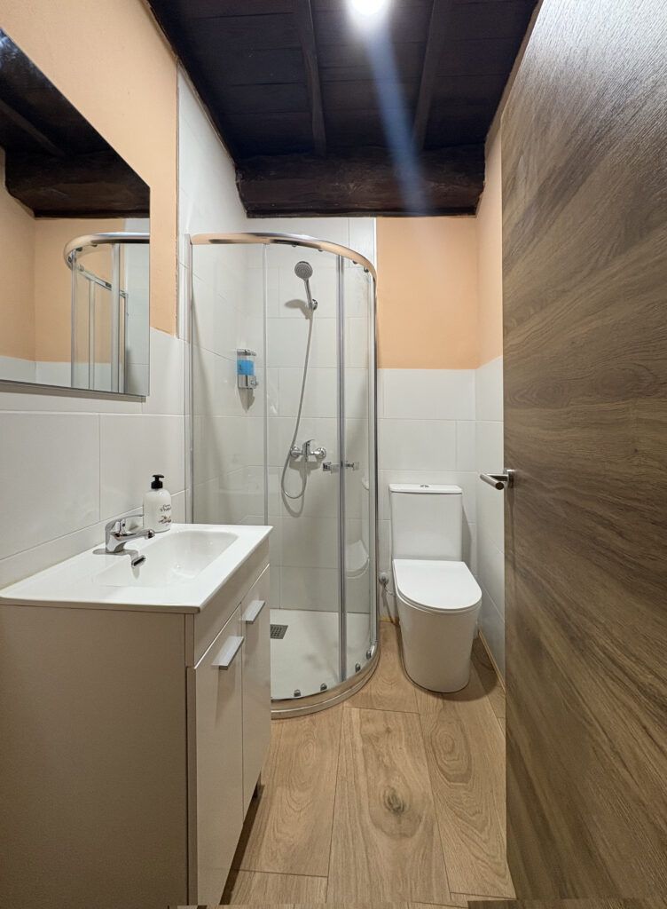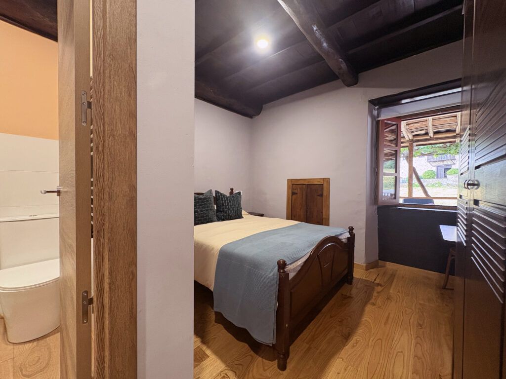 Habitación con baño, cama de 135, televisión, armario y mesa para ordenador, Acuarela de aguardienteiro
